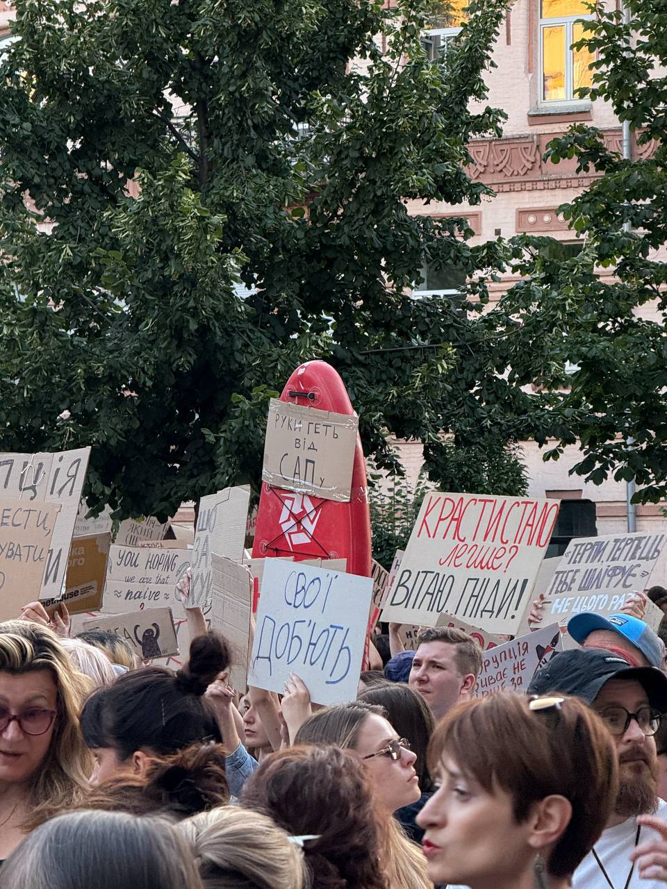 Тут дело совсем в другом. Насчёт коррупционных законов по НАБУ и САП – это была совместная операция фсб и ларёчника дерьмака (папка служил/служит в гру). Дело в том, что на просторах инета мне попалась заметка о том, что в августе должны были состояться слушания в ЕС о подготовке Украины к приёму в ЕС. Наши истинные друзья европейцы приложили к этому немало сил, чтобы обойти венгрию и словению, и чтобы их голоса не повлияли на решающий выбор. А тут подсуетились “мацковские воші і наші гніди”! Это я к тому, что может сделать пара сильных, хотя и недалёких, кротов под крышей полного идиота. Т.е. “кривая рожа” вместе с “торчком” провернула этот беспредел с целью – не дать Украине войти в ЕС. А на вооружение и Украину им вообще наплевать! Эти открытые агенты кремля всё делают, чтобы сорвать любые серьёзные соглашения. И молодёжь опять вышла на улицы. Замечательная всё-таки у нас молодёжь. Патриотичная, умная, смелая! Коллеги, а вспоминайте, что майдан всегда начинался со студенческих бунтов, а заканчивался оччень плохо для лидоров, которые не оправдали надежд избирателей. Хотя, кто их выбирал? Безмозглые идиоты. Поэтому, я думаю, что это будет началом конца этой ZE-банды. Молодёжь уже не отстанет, а потом подтянутся и серьёзные большие дядьки. Будут жечь шины и стучать в бочки и выкрикивать замечательные кричалки типпо “зелю геть”! “зелю с дерьмаком на нары на пожизненно”! “дерьмака с зелей на ….”! Сегодня, кстати, такой плакатик был.