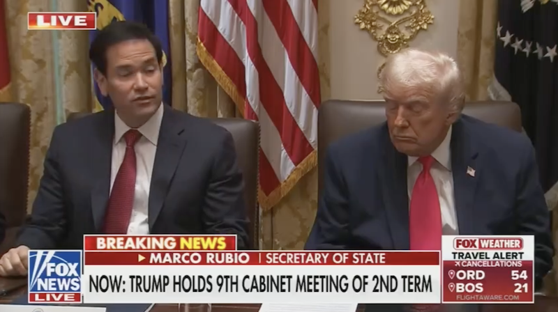 В Сети появилось видео, которое должно было продемонстрировать миру, что Америка снова стала великой. И случилось это не само по себе а благодаря лучшему президенту в истории. На видео можно увидеть госсекретаря Рубио, который отчаянно артикулирует и громко говорит. Как несложно заметить, он слева, ну а справа – тот самы, лучший президент за всю историю. Он – спит. Правда спит он не так, как «Сонный Джо», а гордо, не издавая предательских звуков.