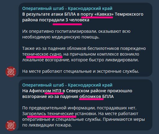 И вот этот вал сообщений говорит о том, что общая система ПВО врага уже истончилась настолько, что более или менее надежными стали очаги, наподобие москвы или того же Валдая. Все остальное уже не может прикрывать настолько, чтобы защищаемый актив был в максимальной безопасности. Результат налицо. Если раньше наши военные «рубили окно» в определенном направлении и пока оно не закрылось, чрез него наносили удары по целям за ним, то теперь просто в одну ночь может прилететь по целому набору целей, находящимся далеко друг от друга. Эта ночь не стала исключением и враг об этом пишет такое: