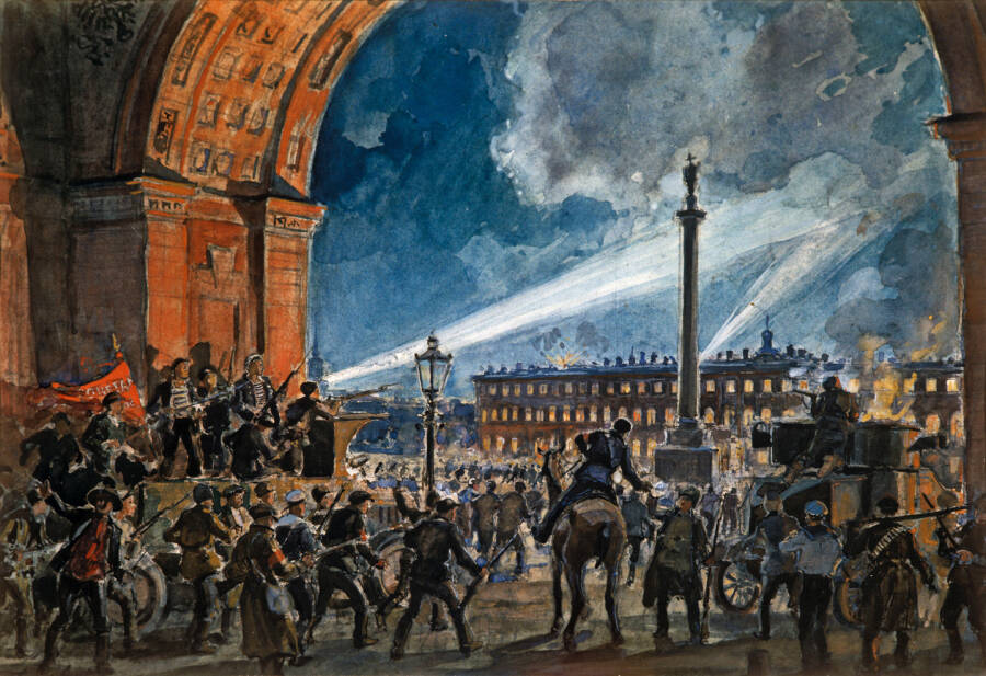Репродукция картины художника Г.К. Савицкого "Штурм Зимнего дворца". Фото: ©РИА Новости